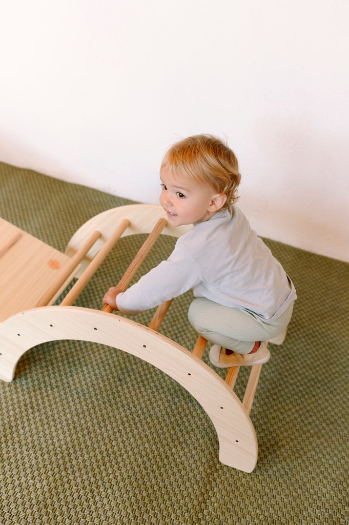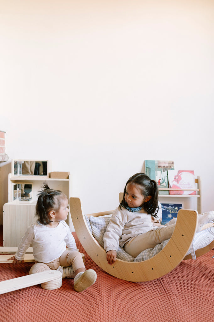 El uso habitual es de escalada o puente aunque también, si lo giras completamente, el de mecedora o balancín. Recomendamos el uso de cojines y mantas para hacerlo más cómodo. También se puede usar como una superficie o divisor si lo pones de lado.