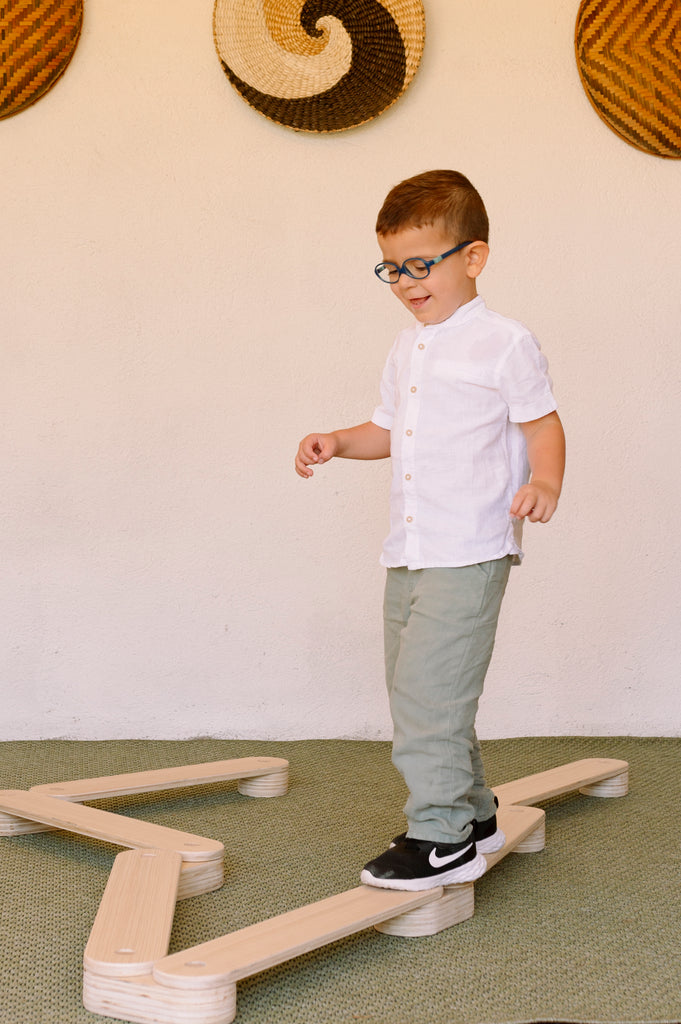 Equilibrio y Coordinación: Al desafiar el equilibrio y la estabilidad, nuestras barras de equilibrio ayudan a desarrollar habilidades motoras fundamentales y mejorar su coordinación corporal.