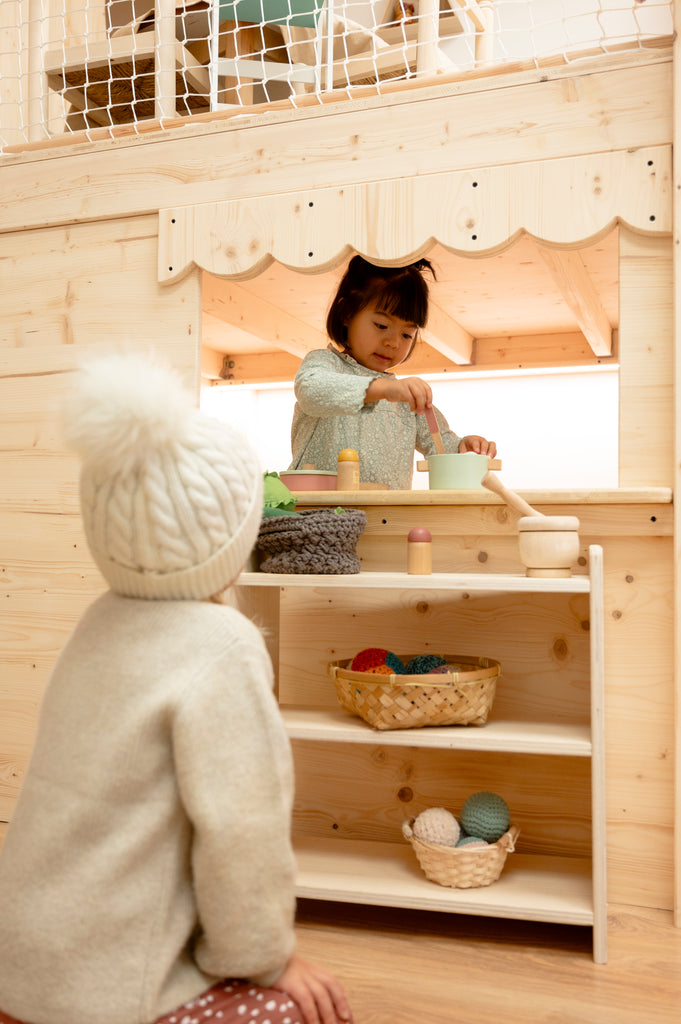 La Estantería Básica está diseñada pensando en la filosofía Montessori y la autonomía de los peques. Crea un rincón organizado donde pueda explorar de manera independiente.