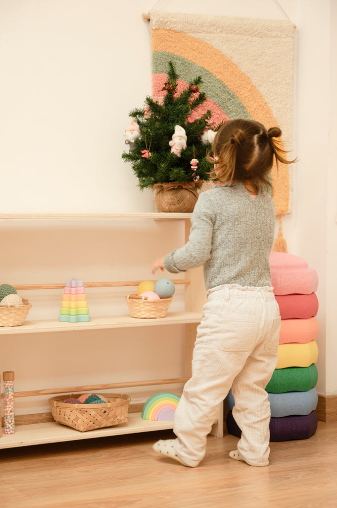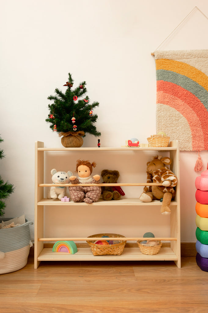 La Estantería regulable está diseñada pensando en la filosofía Montessori y la autonomía de los peques. Te ayuda a crear un rincón organizado, a su altura, donde pueda explorar de manera independiente.