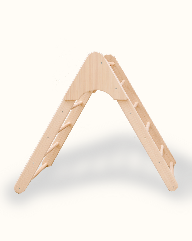 Pirámide de escalada plegable. Se puede adquirir con rampa o sin ella. Lxs pequeñxs se divertirán escalando a la cima. Podemos guardarla con facilidad una vez plegada.
