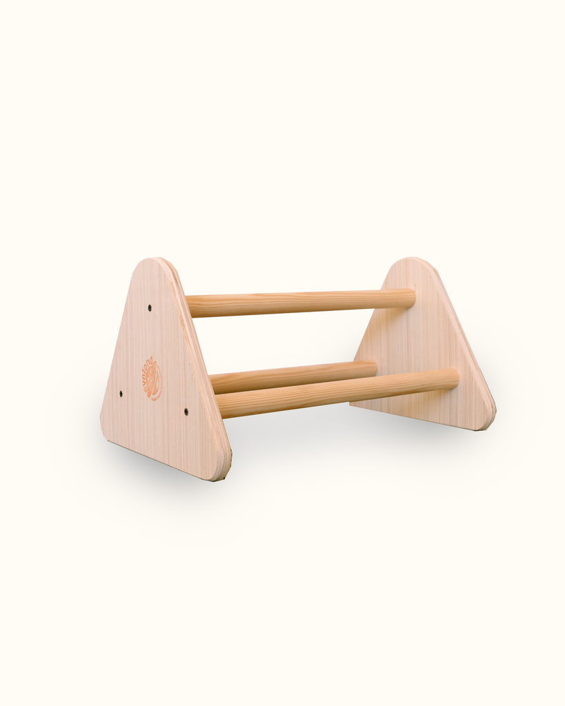 Mini pirámide de escalada fija. Lxs pequeñxs se divertirán escalando a la cima.